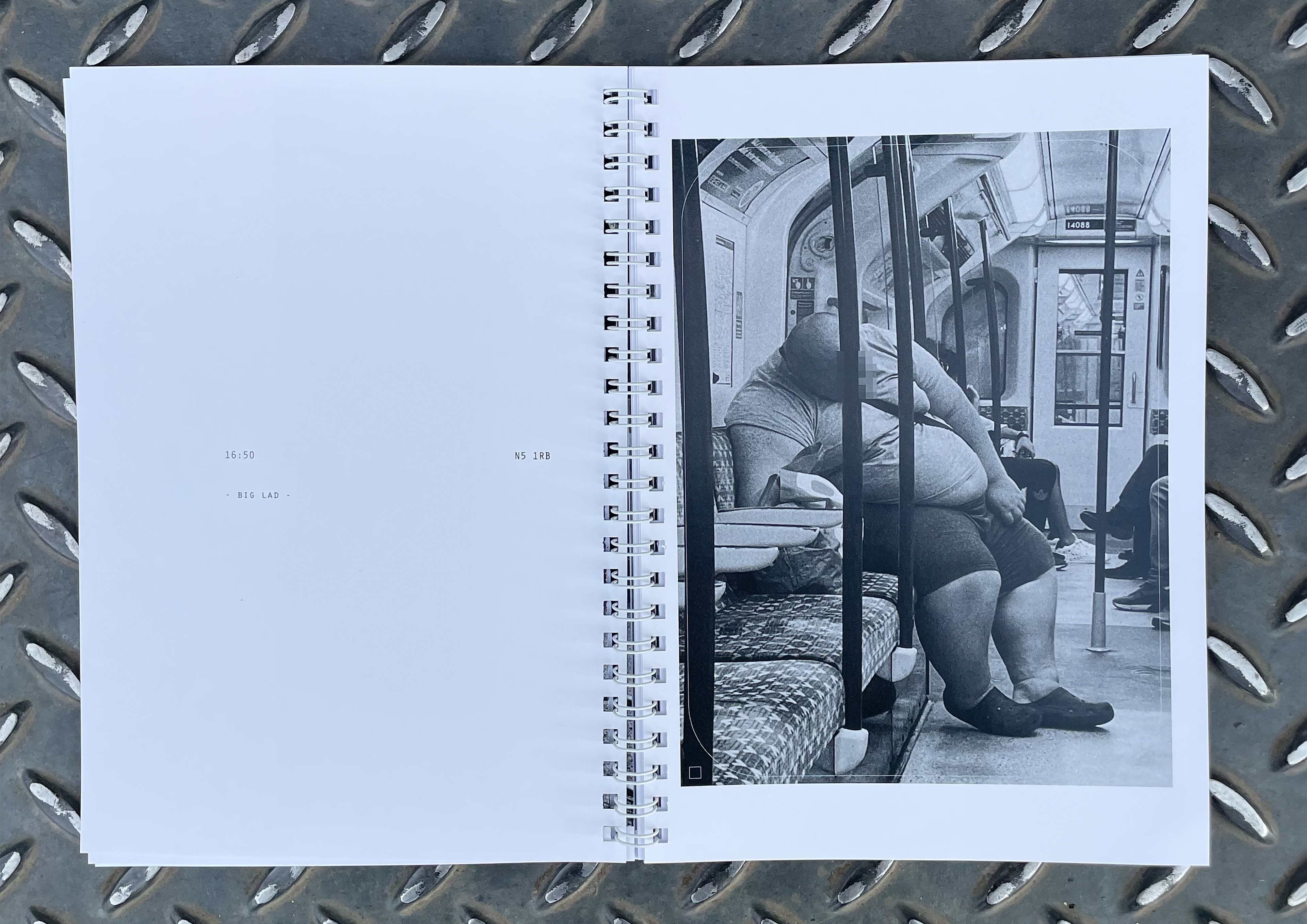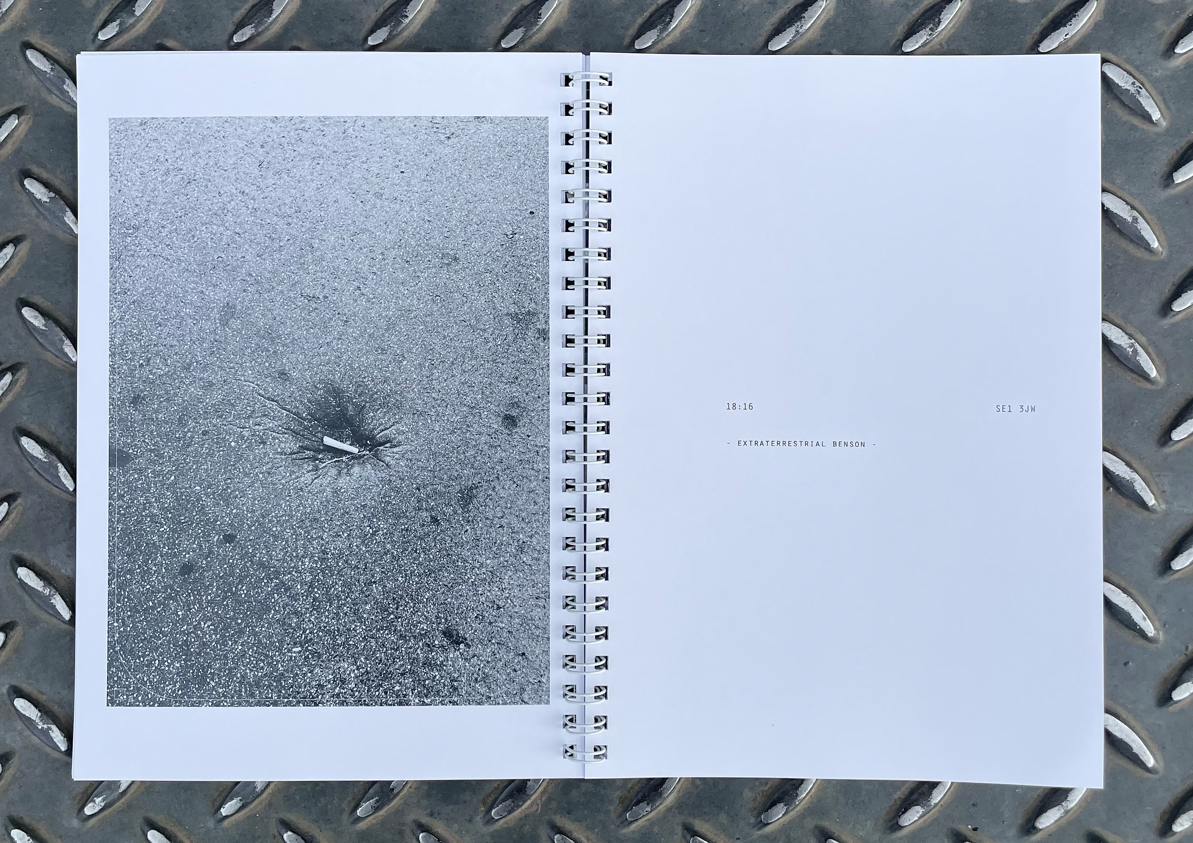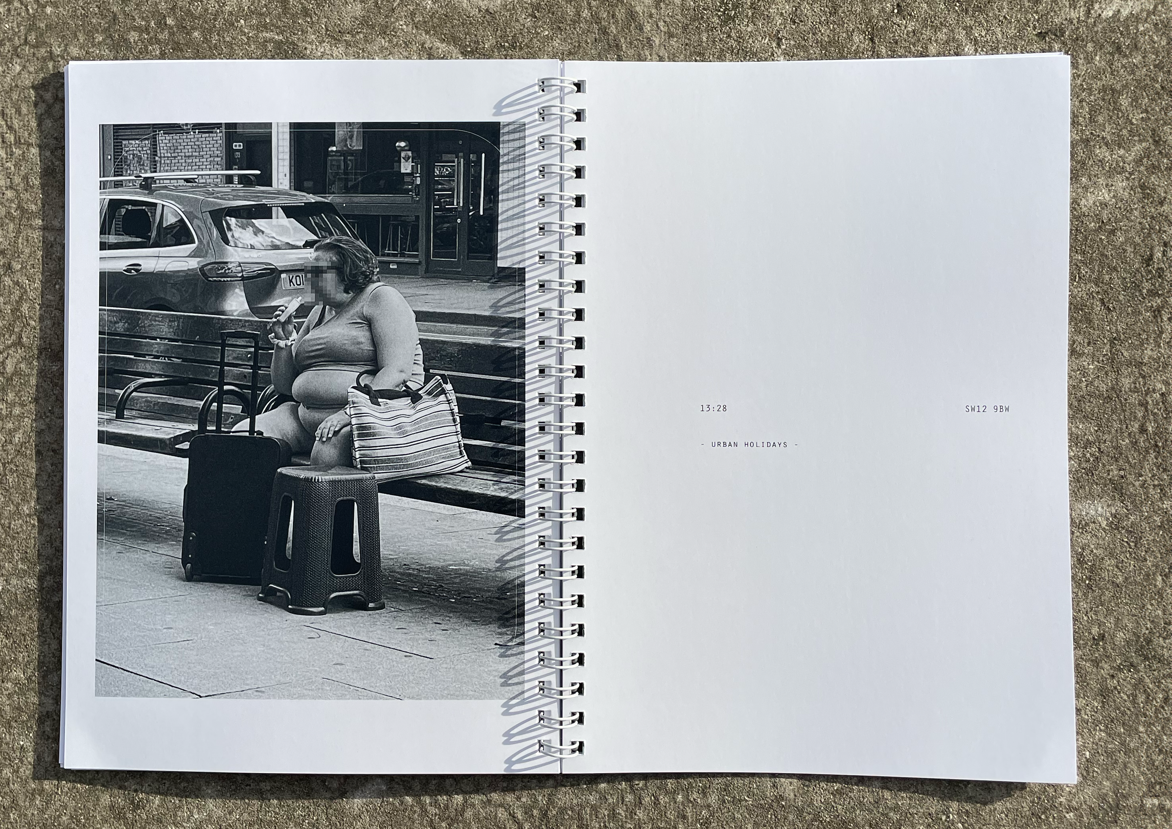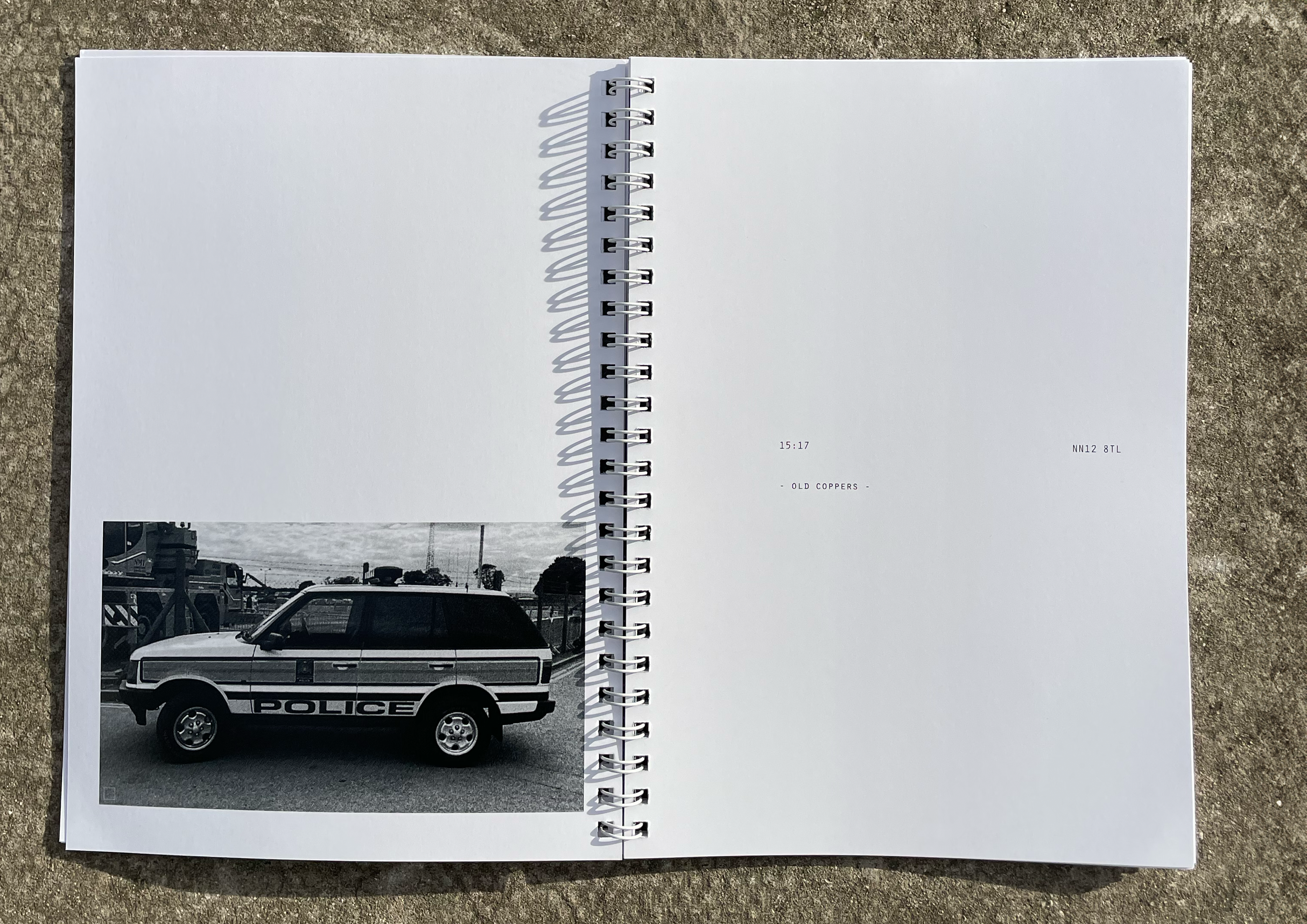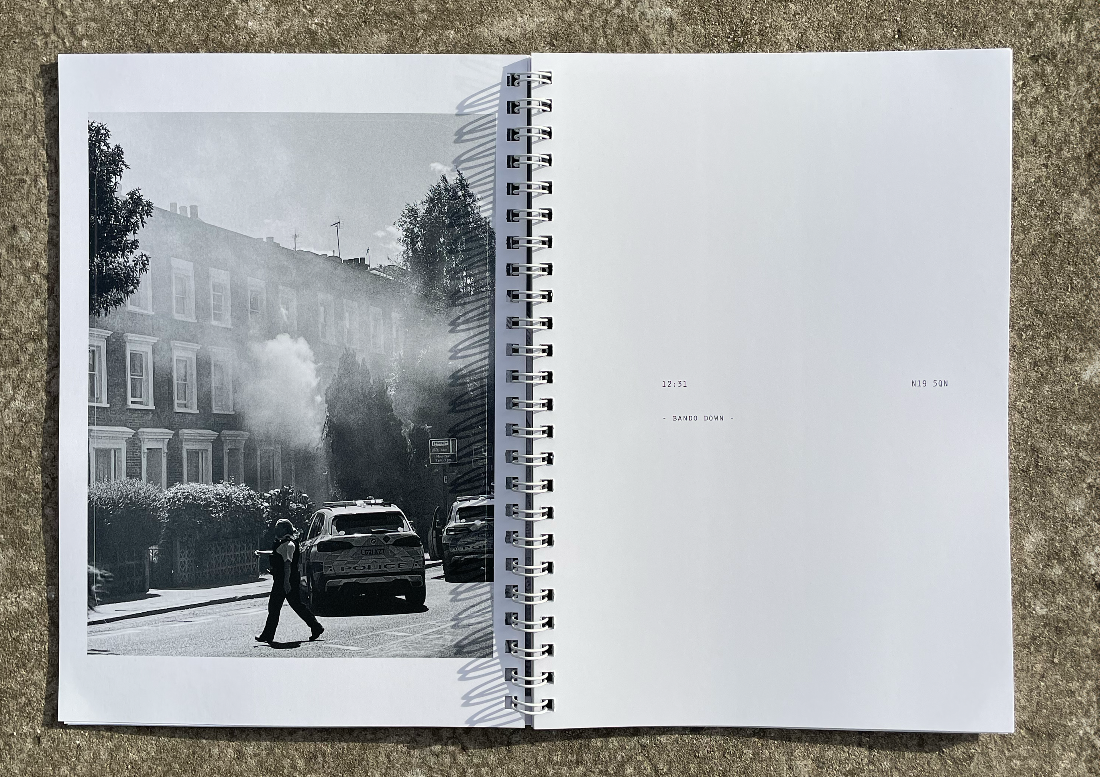 Is a street photography zine. It captures everyday oddities in London over 3 years, marking them with the time stamp and postcode of where they occurred.